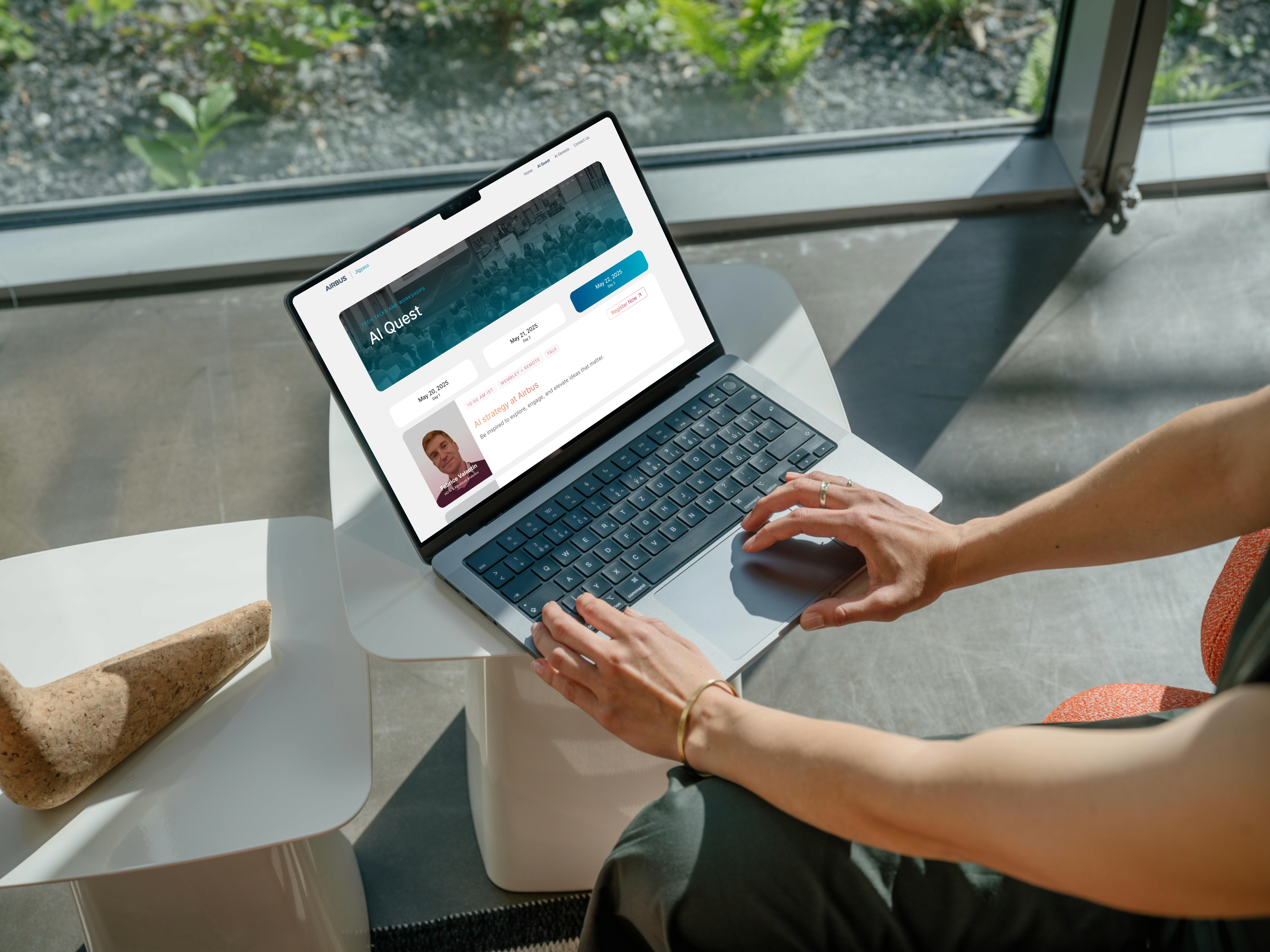 A global AI showcase hosted at Airbus, Jigyasa: The Quest for AI transformed the Bengaluru campus into a buzzing space of curiosity, creativity, and collaboration. As the sole designer, you stepped in early to shape its entire visual identity, from the event’s bold branding and theme to every touchpoint attendees would interact with. Over three days, your designs became the face of the experience, tying together tech talks, workshops, and the high-stakes AI Genesis hackathon. It began with wonder, guiding people through AI Quest, a series of keynotes that explored the impact of AI across industries. Then came AI Forge, where insiders got hands-on with Airbus’ own AI platform.